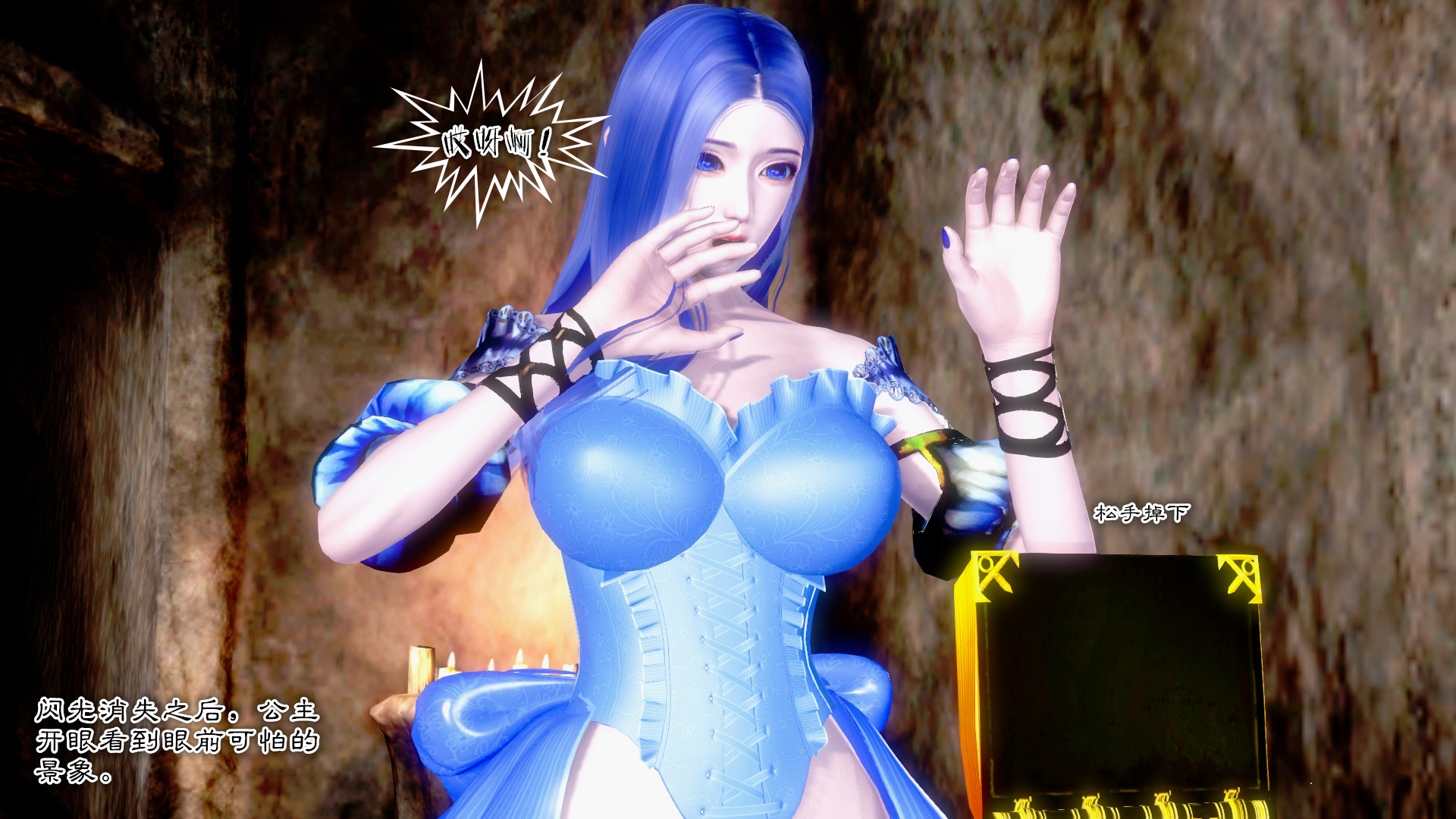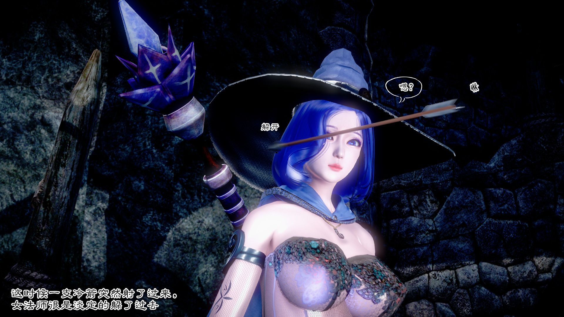 在一个阴森恐怖的洞穴一位女法师一人来探险寻找梦中的吸魔水晶,经过一路的冒险来到最后有财宝的大洞窟,当女法师要在财宝上寻找吸魔水晶时一个章鱼头突然从水中跳出。章鱼头认识女法师原来是另一个真实身份是公主,章鱼头原来是公主一个宫廷园丁,园丁爱上了公主,当向公主求爱被公主骗去变成了这个章鱼头怪物,回忆完后她们开始打斗起来